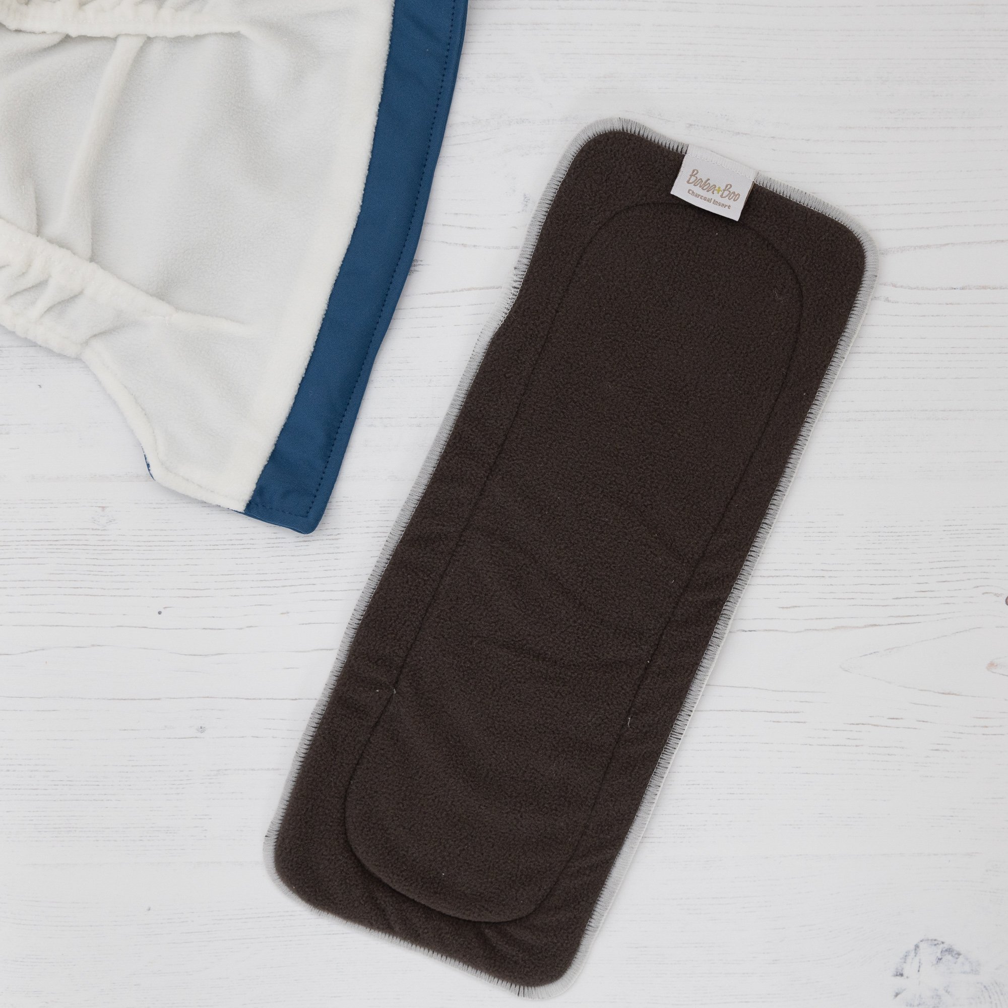 Charcoal vkladačky Baba+Boo sú vyrobené z vysoko savého mikrovlákna s prímesou bambusovo - uhlíkového vlákna, ktorý je antibakteriálny a je veľmi príjemný k detskej pokožke. Napriek tomu sú veľmi štíhle a neurobia dieťatku zbytočne veľký zadoček a ani ich usušenie netrvá dlho.